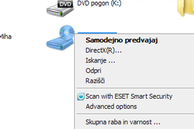 Z desnim klikom izberemo disk J in izberemo Samodejno predvajaj (Autoplay). |