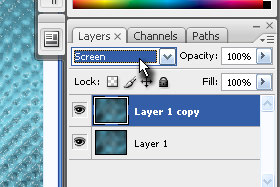Potem pa layerju določite senčenje na Screen (glej sliko).