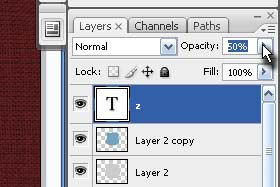 Tekstovnemu layerju znižajte Opacity na okoli 50% (glej sliko).