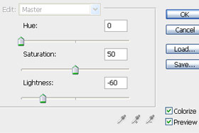 Ko vas program vpraša za ime novega nastavitvenega okna, kliknite gumb OK. Potem pa označite Colorize in nastavite Saturation na in Lightness 50 in -60. Kliknite na gumb OK. |