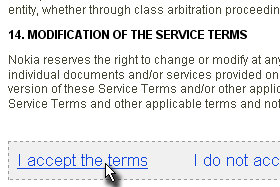 Premaknite se na dno strani in kliknite I accept the terms, če se strinjate z pogoji. |