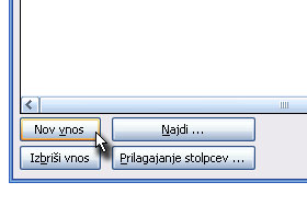 Nato kliknite na gumb Nov vnos.
