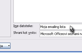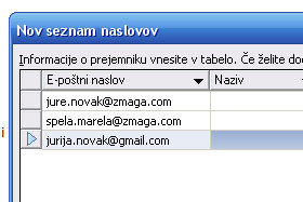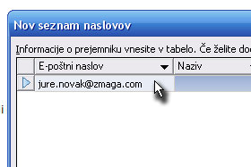 Sedaj pa v seznam vpišite prvi e-poštni naslov (glej sliko).