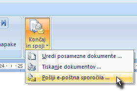 Sedaj pa kliknite na gumb Končaj in spoji ter izberite Pošlji e-poštna sporočila ...
