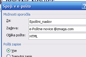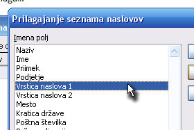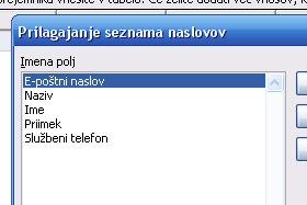 Če boste želeli v sporočilu uporabljati tudi imena (naprimer: Dober dan g. Novak), potem pustite ista polja kot jaz. Kliknite na gumb V redu. Jaz sem potem polje E-poštni naslov še premaknil navzgor v listi. |