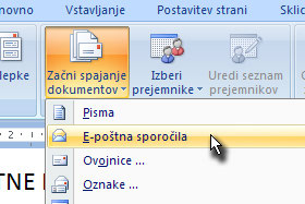 Kliknite nato na gumb Začni spajanje dokumentov in izberite E-poštna sporočila.