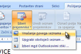 Potem pa kliknite na gumb Izberi prejemnike in Vnašanje novega seznama ...
