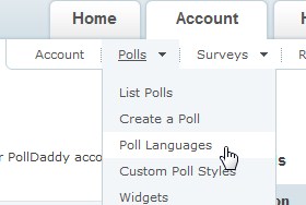 V zgornjem meniju kliknite na Account. Nato kliknite na Polls in Poll Languages.