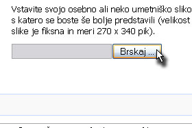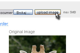 Kliknite na gumb upload image. Slikovna datoteka ima lahko velikost največ 5MB. |