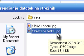 Pod obdelano sliko boste videli informacije, koliko je slika pomanjšana in kakšne ima nove dimenzije.