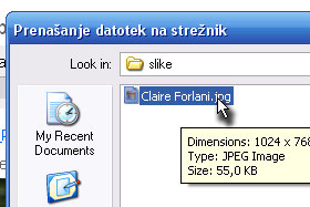 V oknu z raziskovalcem izberite prej shranjeno sliko in potrdite s klikom na gumb Odpri.