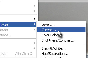 Kliknite zgoraj na Layer, New Adjustment Layer in izberite Curves...