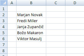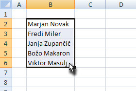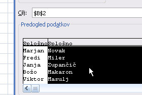 V tem primeru bomo ime in priimek, ki se nahajata skupaj v eni celici, razdelili na dva dela.
