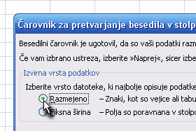 Ker je ločilo v tem primeru presledek, označite zato Presledek in kliknite na gumb Naprej.