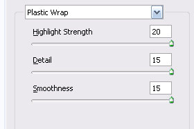 Kliknite zgoraj na Filter, Artistic in izberite Plastic Wrap... V novem oknu določite iste vrednosti kot jaz in kliknite na gumb OK. |