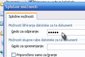 Preden se bo dokument odprl, bo potrebno vpisati geslo.