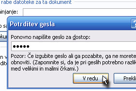 Ponovno vpišite prej vpisano geslo in kliknite ponovno na gumb V redu.