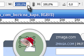 ![]() Božično kapo lahko obrnete tako, da zgoraj v orodno vrstico W določite -100% (glej sliko). |
