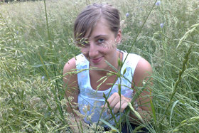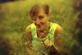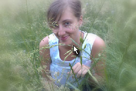 Jaz sem odprl fotografije Nike, ki se mi skriva v visokoraslem travniku.