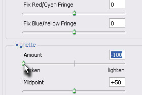 V novem oknu v polju Vignette Amount določite -100 in kliknite na gumb OK. |