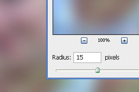V novem oknu določite Radius 15 pixels in kliknite na gumb OK. |