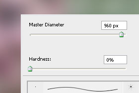 Kliknite z desnim miškinim gumbom na dokument in Določite Master Dimater, ki bo pokril okoli 80 odstotkov celotne fotografije in Hardness 0% (glej sliko).