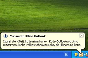 Outlook bo odslej, ko bo minimiran, skrit v tej ikoni.