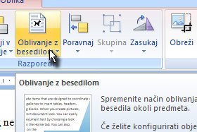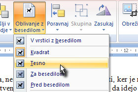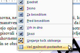 V novem oknu nastavite razdaljo med sliko in besedilom (glej sliko).