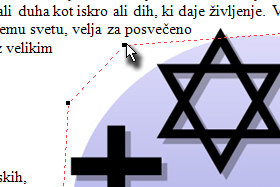 Z miško začnite počasi premikate linije, ki predtavljajo mejo med sliko in besedilom (glej sliko).