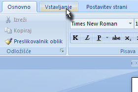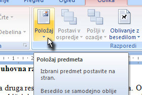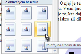Jaz sem izbral postavitev na sredini in desni strani dokumenta. |
