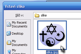 V oknu z raziskovalcem označite poljubno sliko in kliknite na gumb Vstavi.