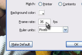 Pritisnite tipki CTRL + J in v novem oknu Frame rate določite 35 fps.