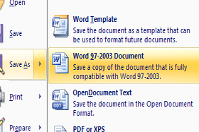 Sedaj shranite s klikom na okrogli gumbek in pritisnite Save As in na Word 97-2003 Document.