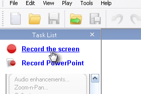 Ko se vam program odpre, kliknite zgoraj desno na Record the screen (glej sliko).