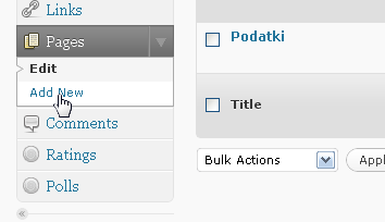 Če si pa želimo še povezavo v objavi(ali strani), pa kliknemo na Posts in Add New(za strani - Pages in Add New).