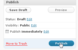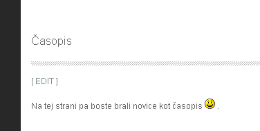Sedaj imate v vrstici vrsto orodj. Naj vam jih razkažem. Prvi je za odebeljen napis v vsebini, drugi je za ležečo pisavo in tretji je za "črtano" objavo. Za Publish kliknemo na priljubljen gubek, ki smo ga kar že velikokrat imeli: Publish! |
