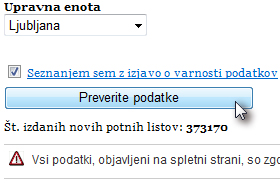 Označite, da ste seznanjeni z izjavo o varnosti podatkov in kliknite na gumb Preveri podatke.