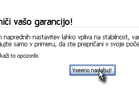 Prikazalo se vam bo varnostno sporočilo, kliknite Vseeno nadaljuj!.