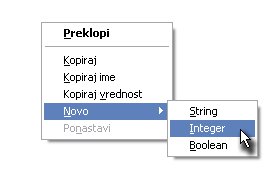 Zdaj pa kliknite z desnim miškinim gumbom kamorkoli (lahko tudi na config) in izberite Novo, Integer.