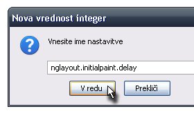 Vnesite ime nastavitve nglayout.initialpaint.delay in kliknite V redu. |