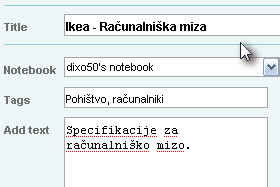 Ko se vpišete v program, vpišete naslov, in ostale specifikacije za zaznamek.