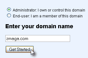 Zgoraj označite Administrator: I own or control this domain in spodaj vpišite vašo obstoječo domeno.
