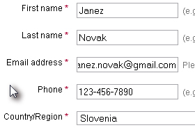 Vpišete lahko samo ime, priimek, elektronski naslov, telefon in državo, ostala polja lahko pustite prazna. Spodaj z kljukico označite še polje, da izpolnjujete pogoje ipd. |