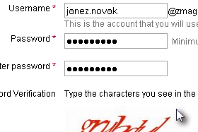 Sedaj vpišite svoje željeno uporabniško ime za elektronski naslov, geslo ter prepšite znake s slike.