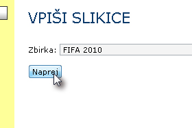 ![]() V dvižnem meniju izberite vašo zbirko albuma in kliknite Naprej. |
