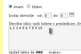 Ko ste vnose shranili se vam je odprla stran z pravkar vpisanimi številkami slikic.