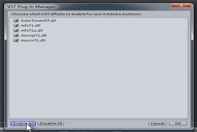 V VST Managerju kliknite na Enable All, da omogočite vse effekte, ki jih imate nasnemane.
