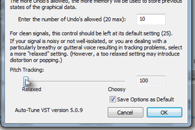 V AutoTune kliknite na Options in potegnite spodnji kurzor popolnoma v levo proti možnosti Relaxed.