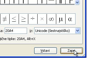 Zaprite še okno s simboli, tako da potrdite na gumb Zapri.