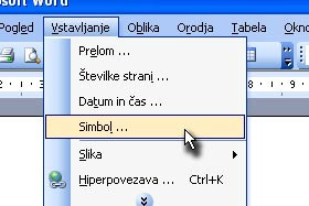 Za več simbolov in posebnih znakov pa kliknite na Vstavljanje in izberite Simbol ...
